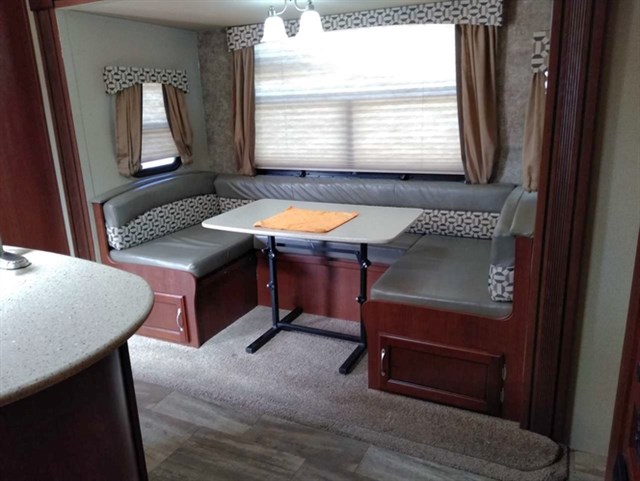 Sale fell through, so this beautiful trailer is up for sale again. It has 2 slides which give you a huge kitchen/ living area. Gorgeous kitchen with island, solid surface counters, microwave, 3 burner stove, oven, fridge, large pantry. Has a fireplace, TV and DVD player. Queen bed with 3" topper and table converts to bed, tons of storage inside and underneath, electric jacks. Has been very lightly used. Comes with $700 sway bar and tire covers.
