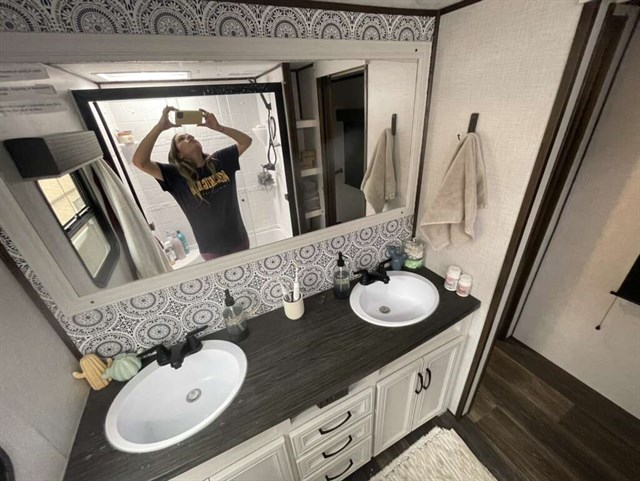 39ft long 2 bedroom and loft, 1 bath 5th wheel. We bought this brand new just over a year ago and it’s been parked ever since, so tires are basically new, tanks are new are we hooked up to water (never had to fill the tanks). Full size refrigerator, auto leveling, solar panels, 2 AC units (one in master other in living area), king size bed in bedroom. 4 slide outs, one tv but master bedroom and spare bedroom have capability Will include sewage hoses. We took out the couch and stored it in our storage unit so we will return when it. Great rv was perfect for us to save money while we bought a house!