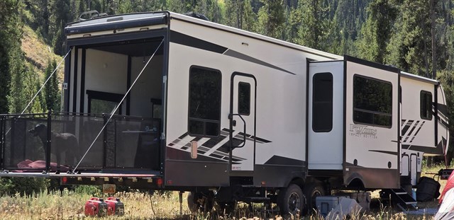 Camping season is right around the corner! Time to get your toy hauler! This 5th wheel has been a lot of fun, has everything you need for long camping trips. We are wanting to downsize. No longer in need of this big of a 5th wheel. 42 foot, 3 slides, 14 foot garage fits a ranger just fine, 2 beds and half bath in garage, one of the beds can turn into benches, garage has its own entrance door, living room/kitchen has a loft bed, full fridge, stove with oven, microwave, tv, DVD and sound system, reclining couch with heated seats and massage, lights on cup holder and bottom of couch, tv trays, solor panels on roof, no leaks on roof, fuel cell for all the fun your gonna have with your ATV, generate on board with control panel to run it from the inside, bathroom with shower, queen size bed a king could probably fit as well, two 7 gallon propane tanks, washer dryer hook up, outside shower, storage, auto leveling, black out blinds, Hot water on demand, AC unit. Any questions feel free to text and I will responds as soon as I can, Thank you