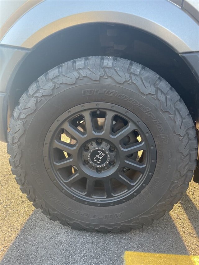 Owl Ladder/Tire Carrier with matching wheel and tire mounted\