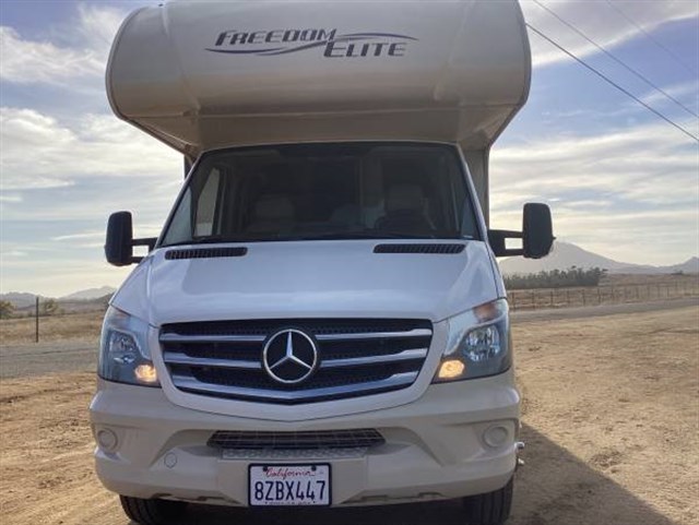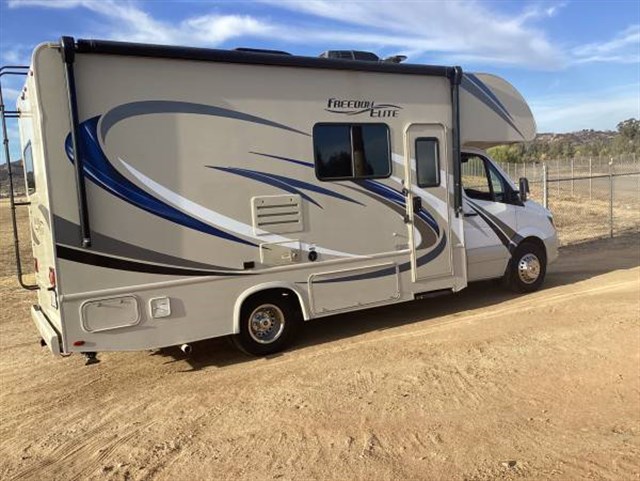 Travel confidently in a Mercedes-powered diesel Class C RV. This Freedom Elite 24FE is a self-contained, efficient home-away-from-home.