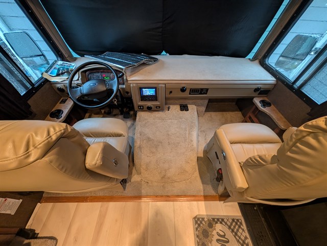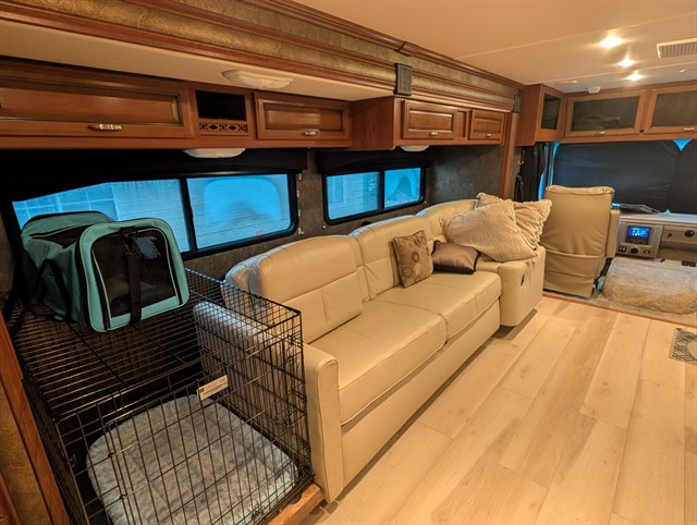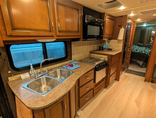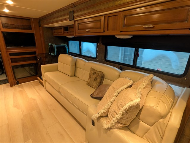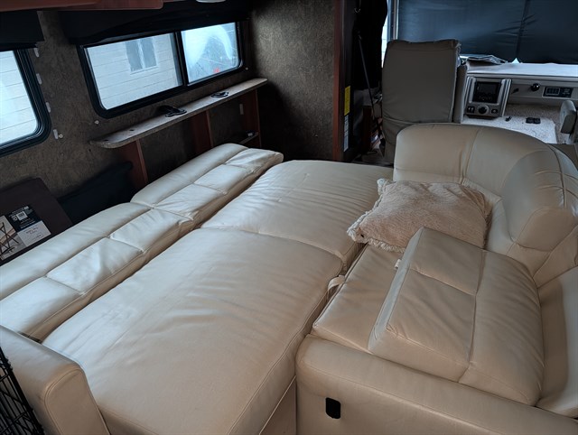 The RV has a custom made large couch that my parents never tried to fold out...so I gave it a try and did a ok job at it, you might do better. Looks like that sleeps two plus a Queen bed for a total of four. Refrigerator, sink, propane oven/stove, cabinets, two toilets, one shower, two TVs, a Dish Network satellite and very clean interior. Other options include even a backup camera installed and it does have the standard OEM generator. I don't know all the standard or added options to list them. Ready for all hookups. Everything works and the RV is solid NO LEAKS. Again we want to get the best price we can for the RV to help us settle the RV loan and also not to be cheated for one of the assets my Dad had before his passing. I am including pictures of the RV outside and inside, also the two bill of sell records we have for the RV from a year ago.