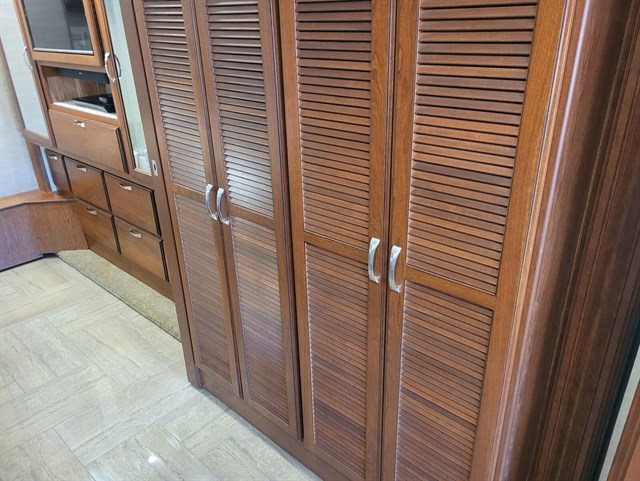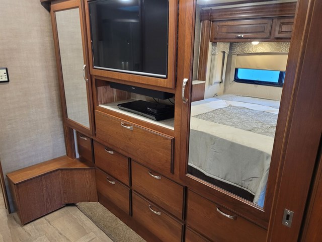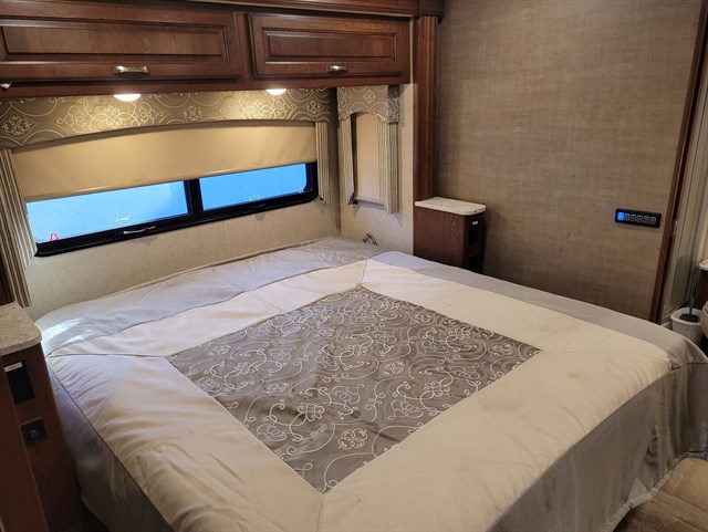 Interior Layout: Bath & 1/2 design, king-size bed, ample storage, solid surface countertops, and hardwood cabinetry.