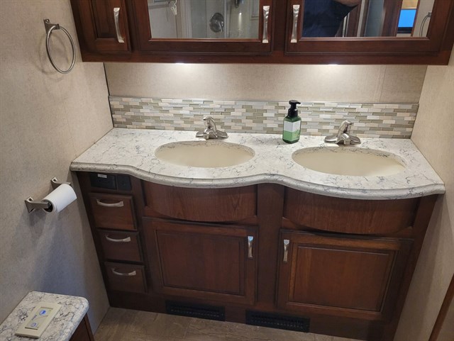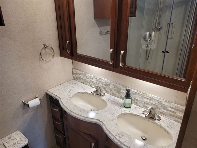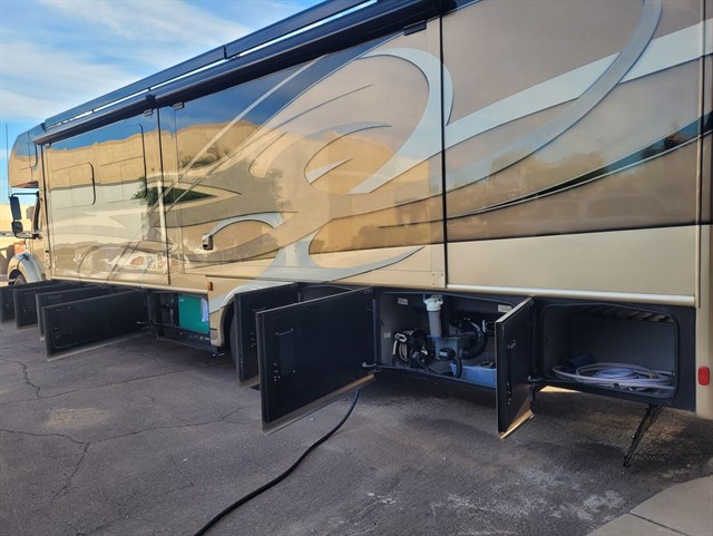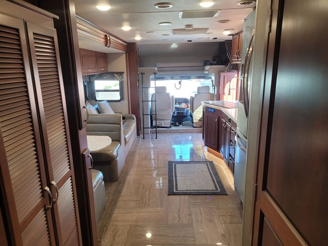 Comfort: Dual ducted AC units, Aqua Hot hydronic heating, leather furniture, and multiplex wiring for convenient controls.