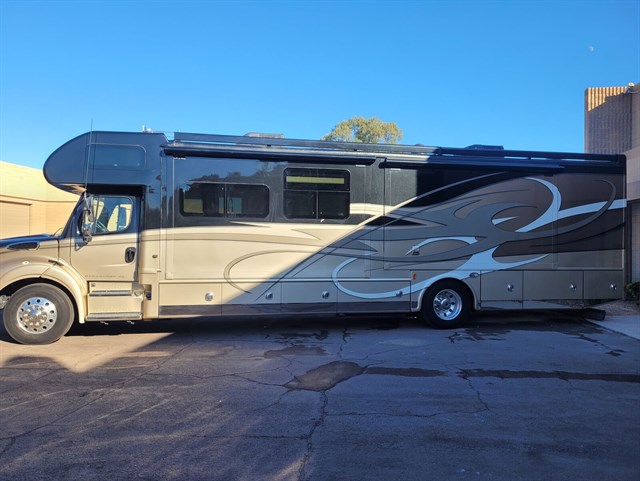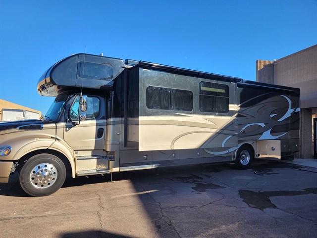 It's known for its premium construction, combining automotive-style cab comfort with luxury coach amenities.