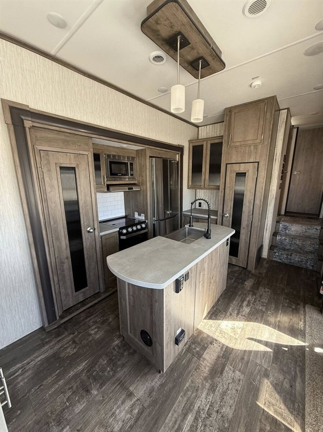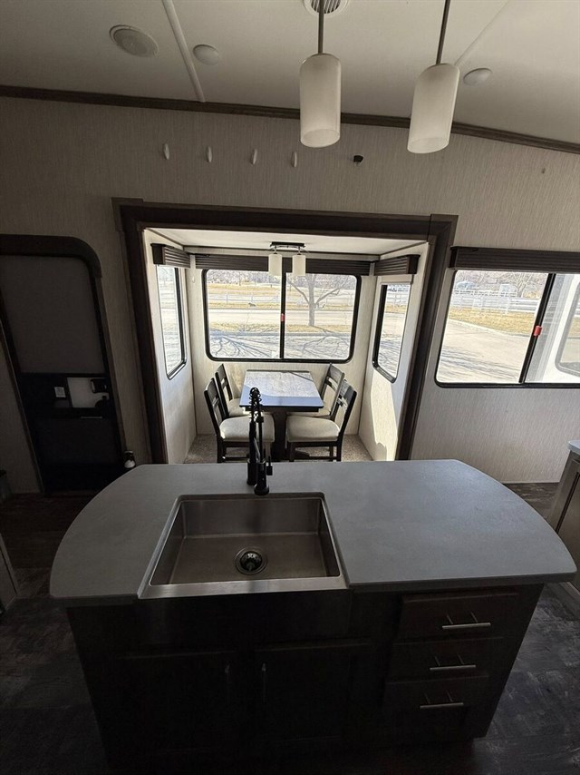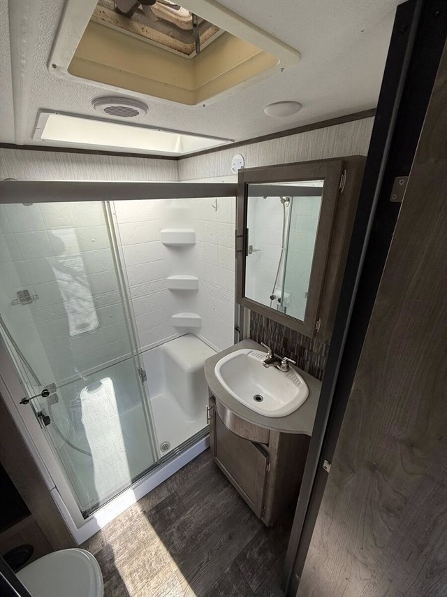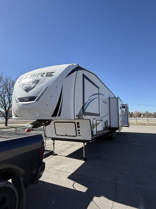 Inside, enjoy the Sabre’s signature spacious floorplan, high-end finishes, abundant seating, and a true residential feel. Whether you’re relaxing in the elevated rear den, entertaining guests, or settling in for extended stays, this model delivers premium amenities in every room.