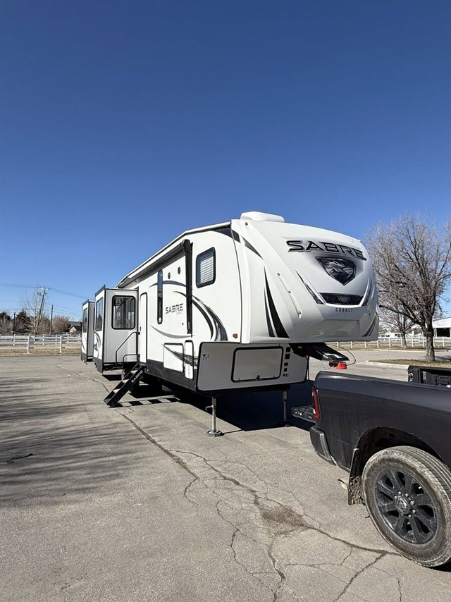 Step into residential comfort and exceptional build quality with this beautifully maintained 2019 Forest River Sabre 38RDP—a stunning rear-den fifth wheel designed for those who expect more from their home on the road. From its thoughtfully crafted interior to its robust exterior features, this Sabre delivers true upscale living with all the right upgrades already taken care of.