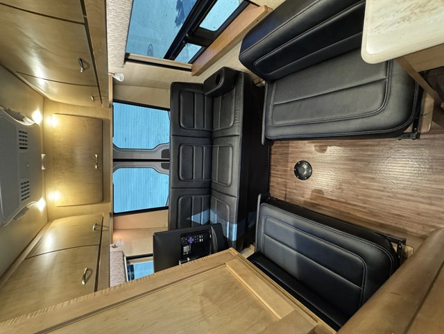 The sleeping area features a comfortable bed that will ensure a restful night's sleep after a day of exploring. The bathroom is equipped with a shower, toilet, and sink, providing all the amenities you need while on the road. The overall design of the interior is modern and inviting, with high-quality finishes and materials throughout.