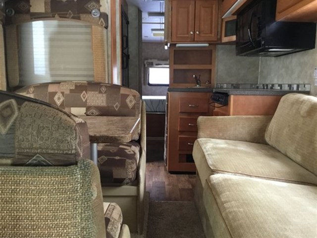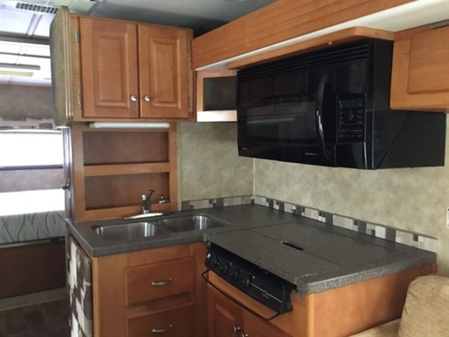 Amenities: Often includes a 15,000 BTU A/C, generator, microwave, 3-burner range, and solid surface countertops.