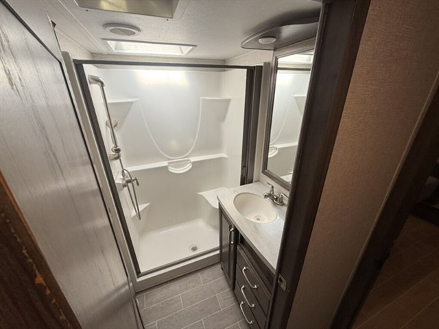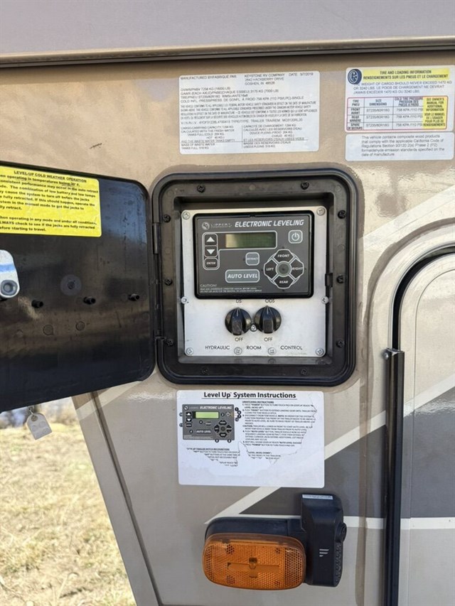 Features • 4 season legacy addition • Full Body Paint • onboard Cummins Propane generator • solar for charging the batteries • two 7 gallon propane tanks • auto hydraulic leveling • electric awnings • IN-command control system • slide toppers •3 hydraulic slides • washing machine with dryer built in.