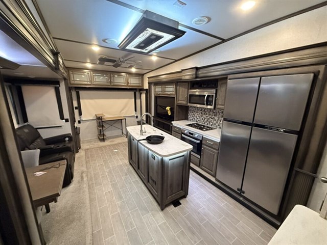 If you are an experienced RVer who is ready to gain more freedom on the road, then you need to check out the Keystone Montana fifth wheel! With exceptional craftsmanship, durable construction, dependable luxury, and cutting-edge technology, the Montana is truly a dream. The Montana has some easy set-up features, like an electric patio awning with LED lights, Hitch Vision with LED lighting, and MORryde Step Above entry steps with strut assist for an easy entrance. The Four Seasons Living Package allows you to camp year around with features such as, a heated and enclosed underbelly, a reflective foil insulated front cap, dual attic vents, and more! The Montana has you covered with convenient camping features, like the central vacuum, the stackable washer and dryer prep, and the Whisper Quiet Cool A/C's for an evenly and quietly cooled RV. Each model includes solid hardwood cabinet stiles, a 5K BTU decorative fireplace heater, a high-rise pull down faucet in the kitchen, plus many more interior comforts to make you feel right at home.