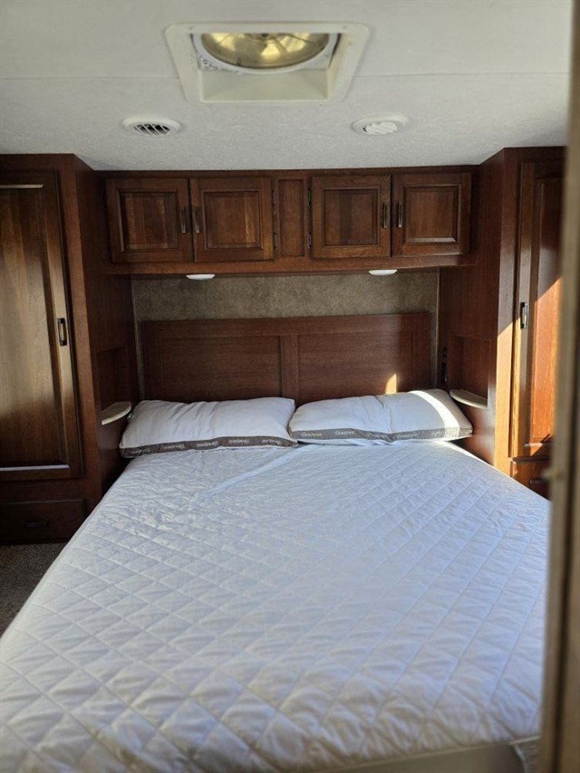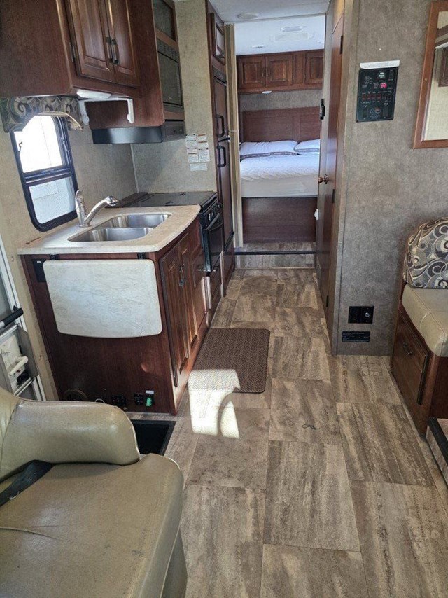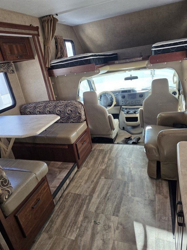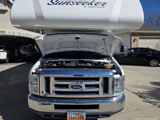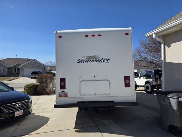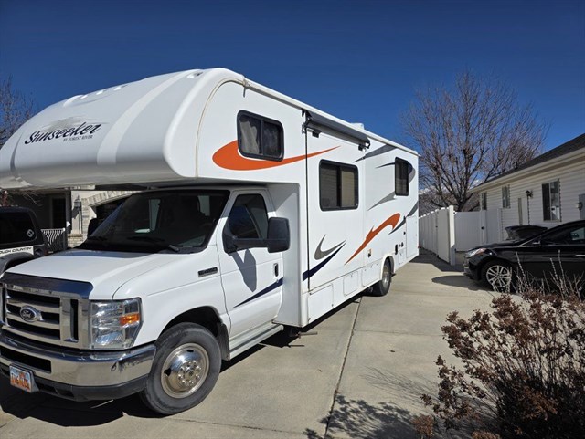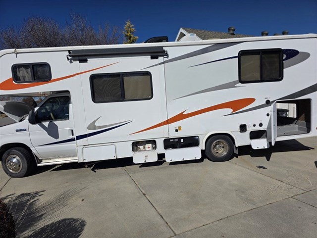Perfect size (28') Motorhome. Sleeps 5 with queen size bed and separate bedroom. We chose this size RV because anything longer is not allowed into Nat'l Parks. It has an ideal floorplan and a beautiful interior with a nice slide in kitchen and galley. We also chose the upgraded "Arctic" package model Sunseeker because it came with extra insulation and has heat vents/ pads around all the water pipes and dump valves underneath the coach to keep them from freezing in winter. It also has Firestone's "Ride Rite" adjustable rear airbags to allow you to level up your load and provide a smoother ride. Amish made "DC" fridge and 2 Solar panels just installed which allows for a pleasant boondocking experience. We also installed a MAXAIR Fan with remote control in vent above the queen bed. The underneath storage capacity is amazing and more spacious than larger Class C's The RV Chassis is the E450 with V-10 Triton engine. It has 56,200 miles and has been well maintained. Deluxe RV body cover included. Low Blue book price is $54,500