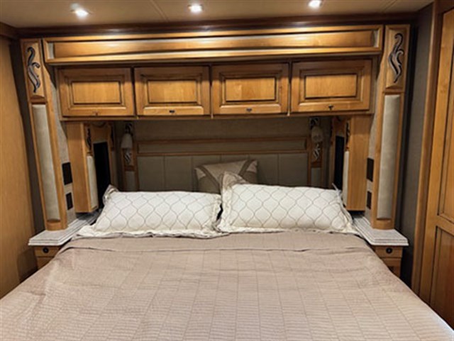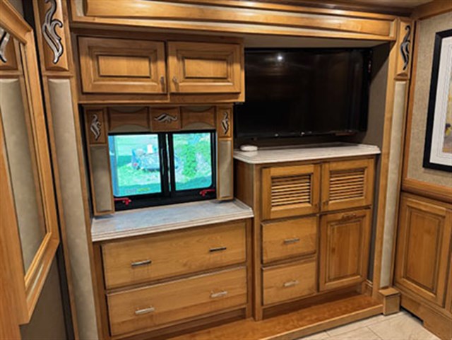 Only selling this coach because of illness of driver and co-pilot. Beautiful coach, completely electric with aqua hot system that was just serviced last month. Fully operational residential Maytag refrigerator, dishwasher, cook top w/convection microwave oven, stacked washer/dryer, three TVs on inside and one outside( dish traveler of roof). Coach has Wingard connection on inside. Also two rocker/recliner chairs and one large sofa. Dinette/Computer work station with Amber glazed cabinets and polished ivory floor tile. No heated floors. King sized memory foam mattress in bedroom. One full bath in rear with shower and half bath mid coach. Cummins 380 diesel, Allison transmission and ten KW diesel generator, has white mahogany full body paint, four slides under coach for easy storage, water hose and power cord on electric rewinds. New spare parts to include floor tiles, belts and water pump. New front tires in 2025.