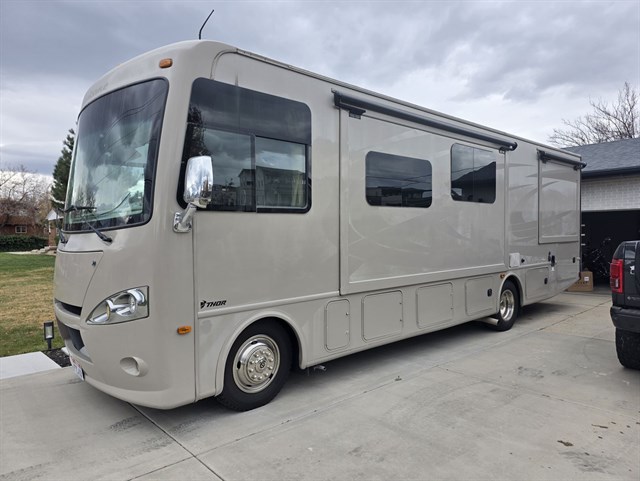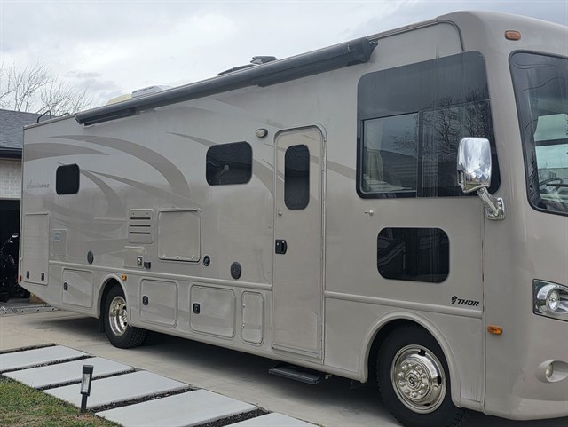 Hi I have a 2016 Thor Hurricane 32' ft motorhome in excellent condition. Powerful V10 gas engine with only 23,200 miles. Runs and drives very smooth. It has 2 slide outs. Sleeps up to 8 people. Private room, couch turns into a bed, kitchen table turns into a bed and there is another bed above the captain chairs.