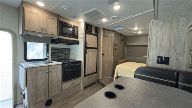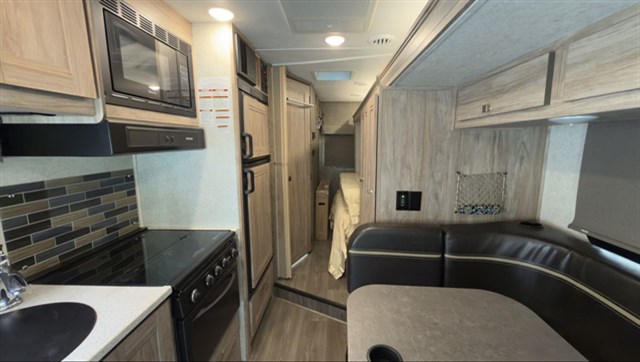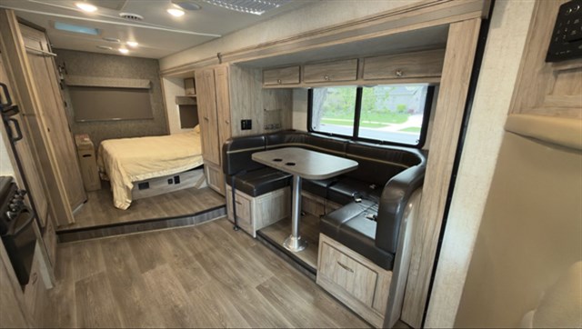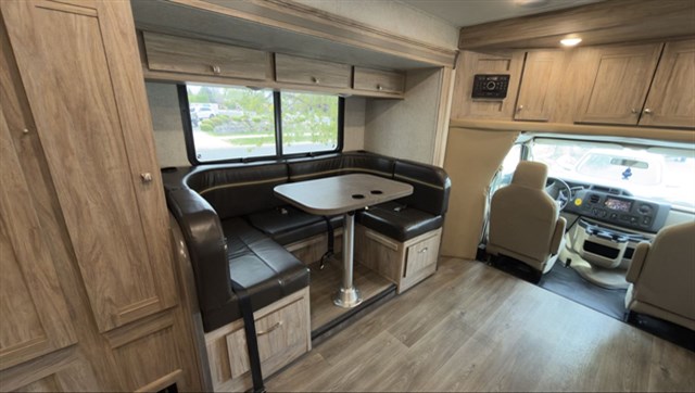 Full-Wall Slide: The 2431S is known for maximizing space with a massive slide-out, providing a rare walk-around bed in a sub-26-foot Class C.