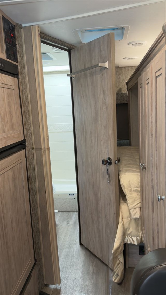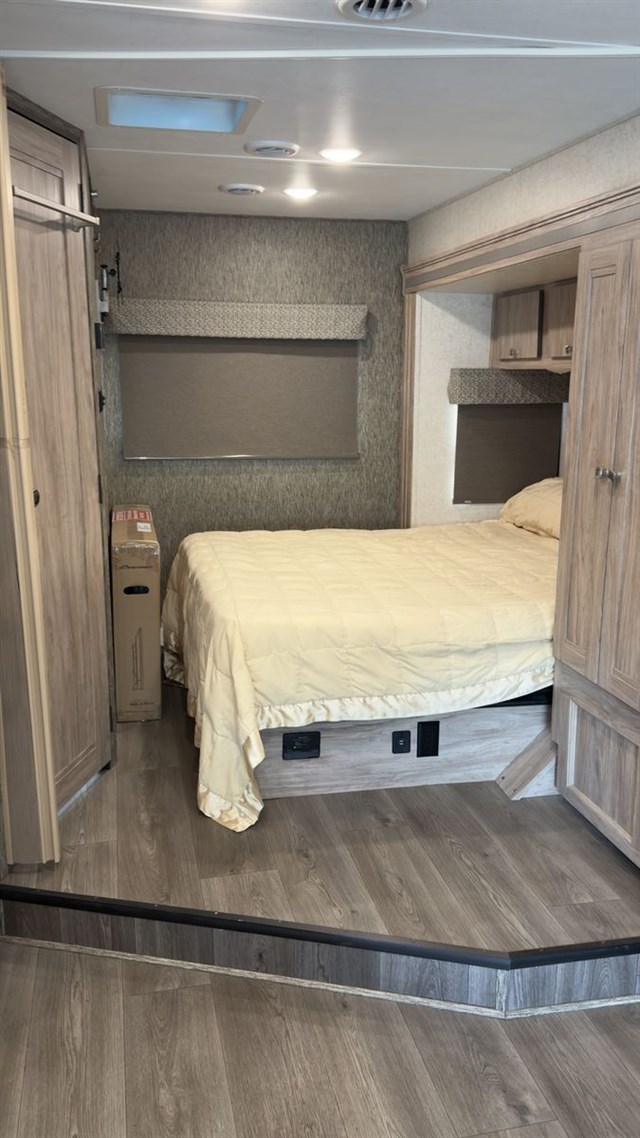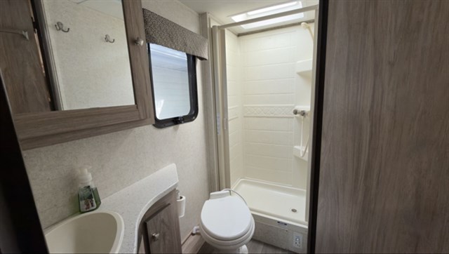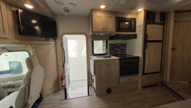 For Sale 2018 Forester 24’ Class C Built on Ford E-450 Super Duty chassis Mileage: 46,306 7,500 LB. towing capacity This motorhome is small but packed with all the essentials, plus many premium features. It’s easy to drive, easy to park and is in excellent condition. Features include: Fiberglass crowned roof to shed water Full-driver’s side slide Automatic electronic leveling jacks Power awning with LED light strip Integrated solar power Integrated HD digitally amplified antennaTouchscreen in-dash radio Backup camera Jensen sound system with alarm, Bluetooth, DVD, and is AppReady TV in living area TV in bedroom USB charging stations in living area and bedroom Cummins Onan RV QG 4000 generator 2 enclosed 12V cabin batteries located inside integrated entry step Ducted heating and air conditioning Queen bed in rear Dinette seats 4 and converts to a bed (seatbelts for 4 persons) Bathroom contains separate shower, toilet, sink and cabinets Water filtration Room divider between living area and bedroom Large windows with blackout roller shades Residential style cabinetry Lots of storage Solid surface countertops.