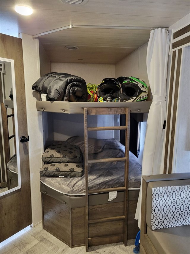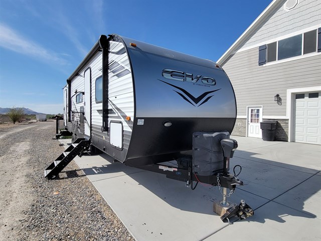 Ready to go Camping!! Like brand new! 2022 Evo by Forest River, used maybe 4 times. Sadly we don't get time to camp anymore. Very clean. Some things never used, everything works. 28.5 ft bumper pull. One large slide-out with table and couch, both fold into beds. Can sleep 6-8 people. Comes with equalizer hitch. 2 large propane tanks, full. Electric hitch and stabilizer jacks. Electric awning with LED lights. Has solar panel to trickle charge battery-very nice not to worry about the batteries dying. Custom solid fold down stairs on front door. TV and stereo with outside speakers, that can also Bluetooth. Fireplace never used. Full bed in front bedroom, with a nice real mattress. Bunk beds in the rear. Large outside storage under master bed, and bottom bunk bed. Comes with portable generator. Hvac works well. USB charging ports. Outside propane grittle and mini fridge, never used. Some things still have plastic on them, that should tell you how little it's been used. Pulls great. Have extra supplies that can come with the trailer if interested. Also still under warranty for 3 more years! Must see to appreciate how new and clean this trailer is. Been stored in covered open shed, so the front is a little dirty/sun faded. Come check it out, serious inquiries only. No low ball offers, paid 51K only 4 yrs ago. Located in Bothwell, UT. Asking only 35K!! Dropped from $45,000! Remember this trailer is literally like brand new with warranty available 3 more years. We dont want it sitting in storage. Your chance for a new camp trailer at a great price!