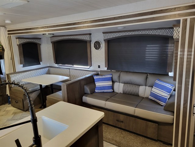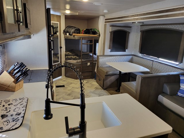 Sleeps: 8 (Queen bed, bunks, U-shaped dinette, sofa)